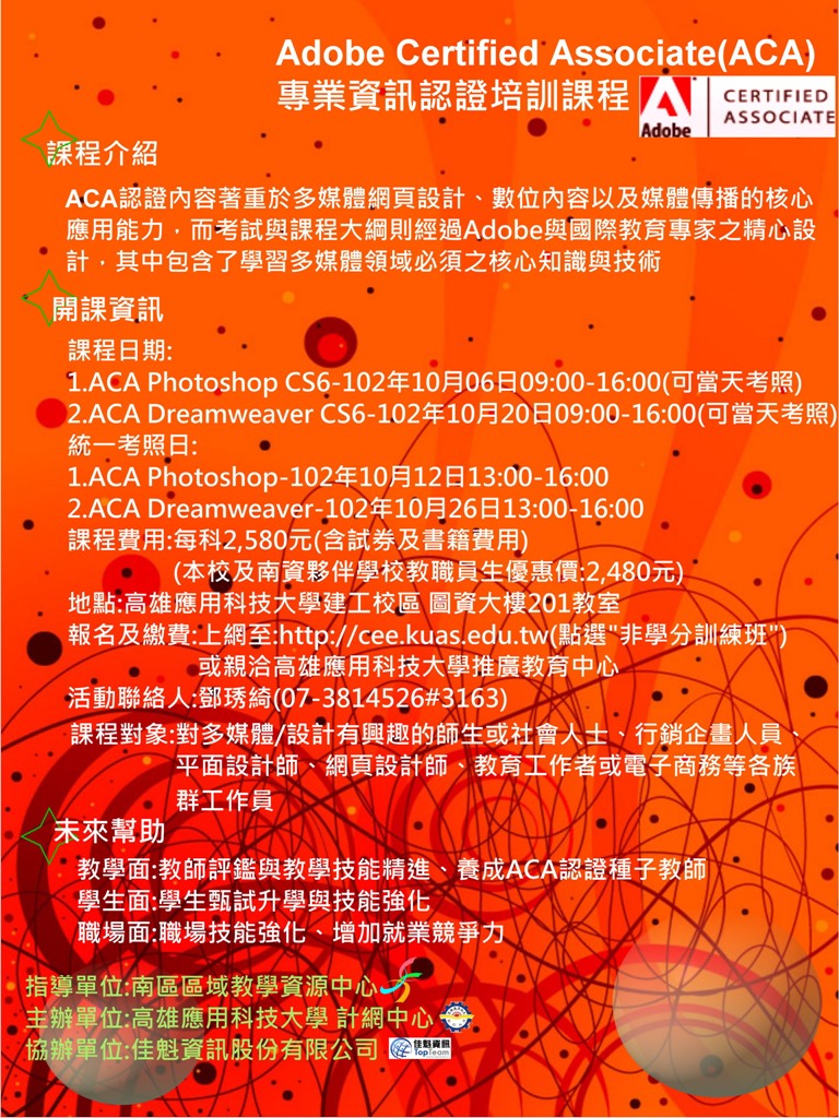 「AdobeCertified Associate(ACA)專業資訊認證培訓課程」相關訊息