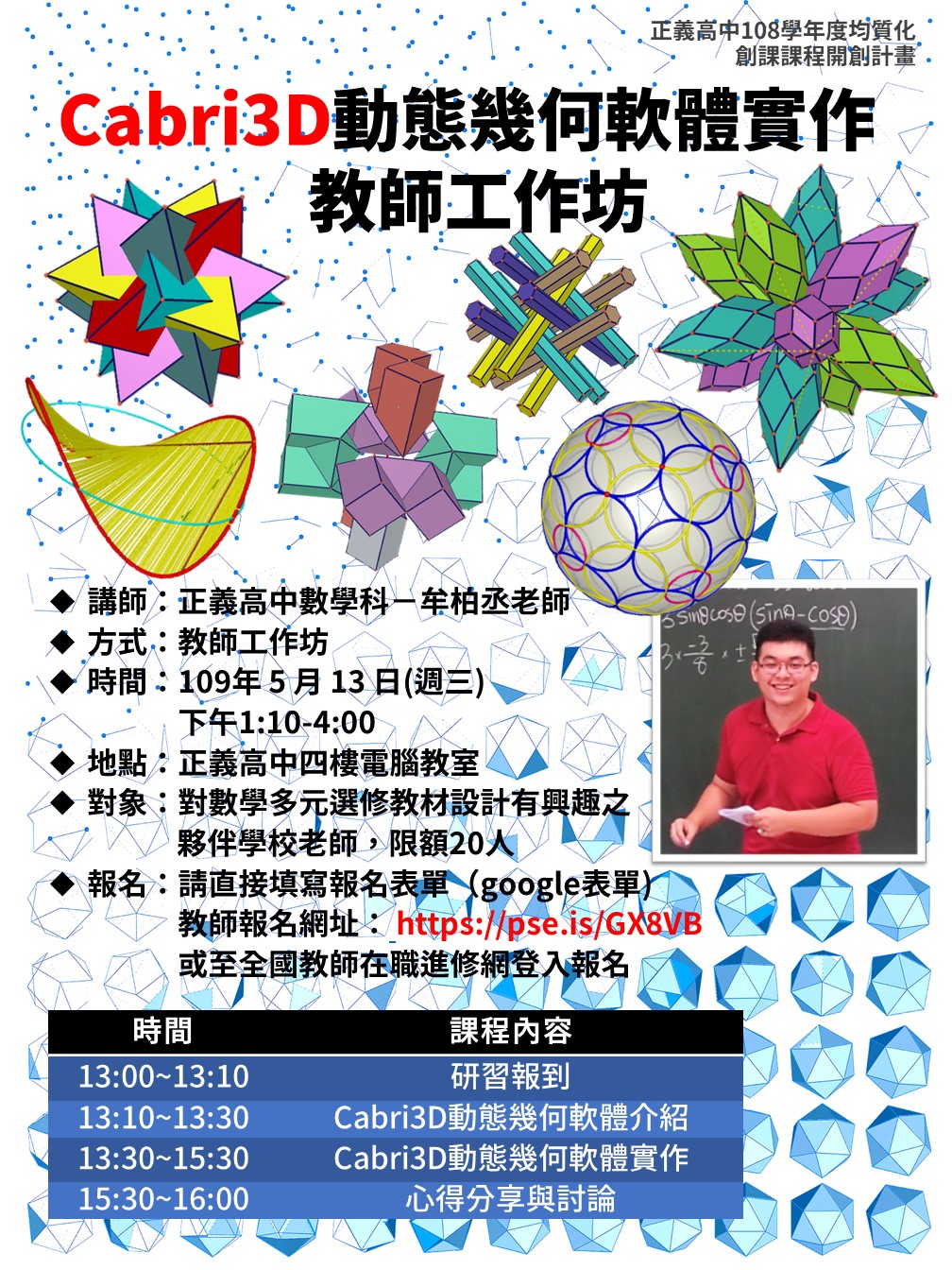 或想學習Cabri3D動態幾何軟體之教師,限額20人