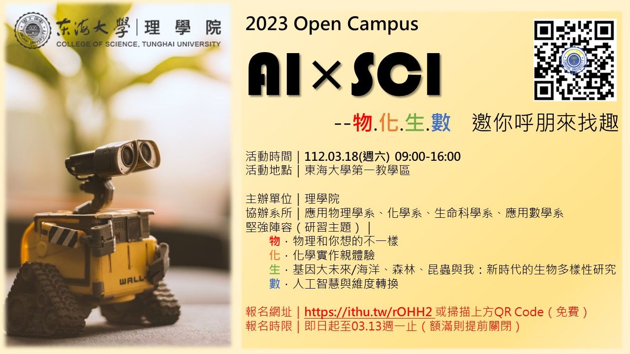 東海大學「2023年Open Campus AI x SCI-- 物.化.生.數邀你呼朋來找趣」